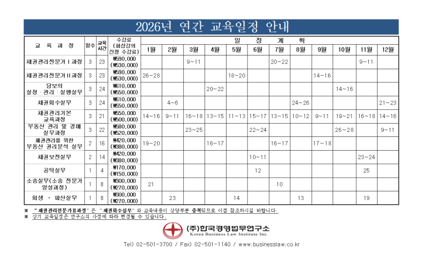 2026 연간교육일정표